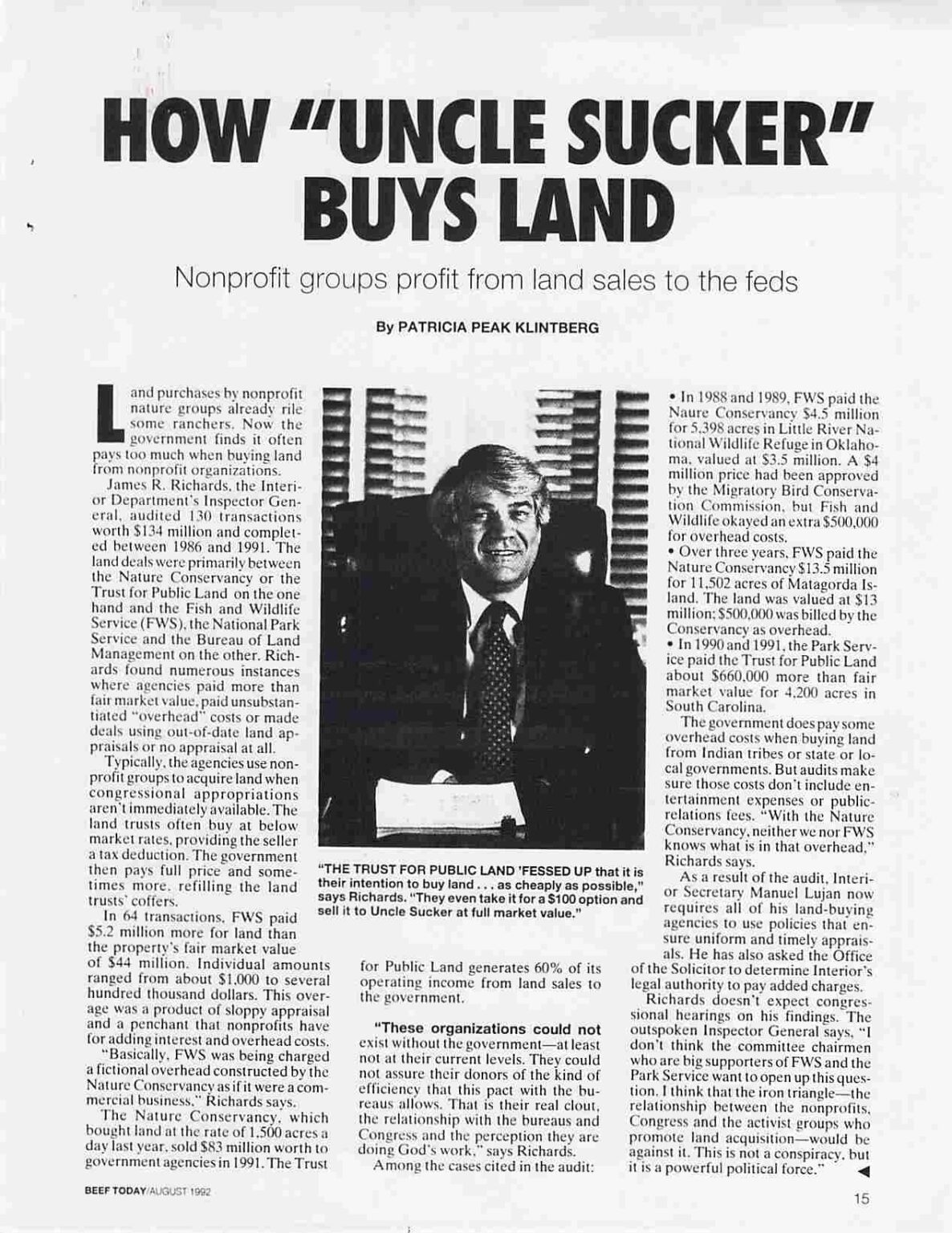 NGOs which have a charter of protecting the lands for bike trails, spotted owls, etc., mostly get funded from *government grants. The mass deception is–“non-government” appears on the surface to be non government, but in fact with every government grant there are regulations with the grant to do certain picayune uses, mostly never evaluated by funders for validity. As a result most grants are poorly managed scams–in this case against agriculture. In fact “non-government” is another word for government. NGOs do not pay property tax.